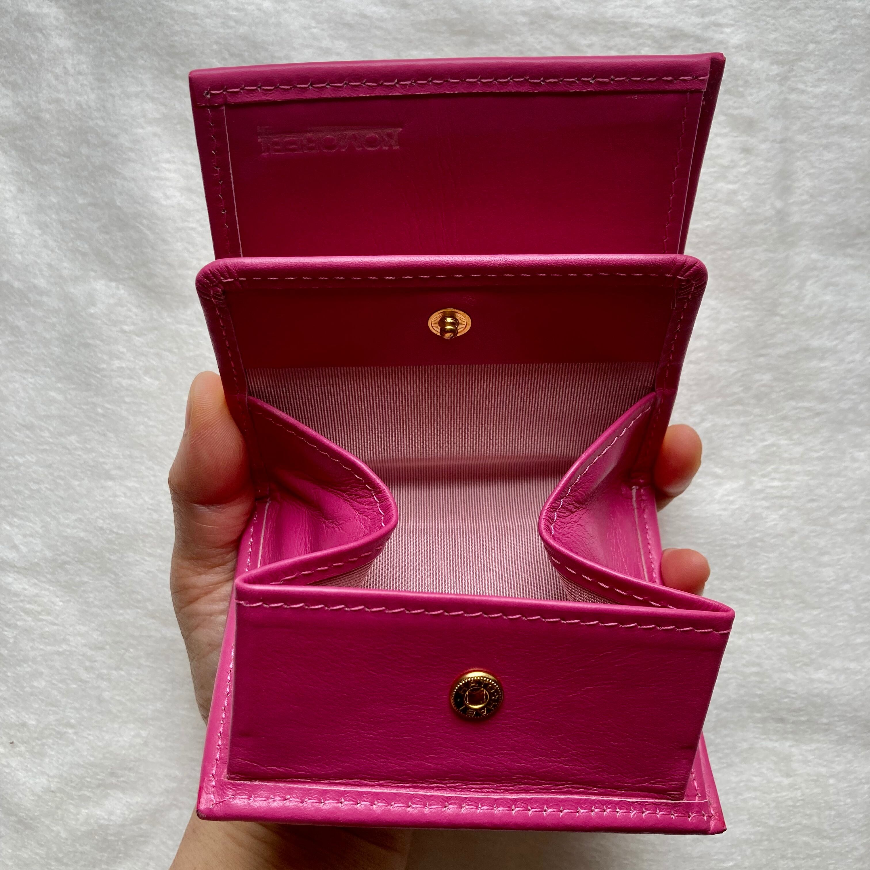 お札と領収書などが別々に収納できます。小銭入れはふたをパッと上げると立体式になるタイプです。