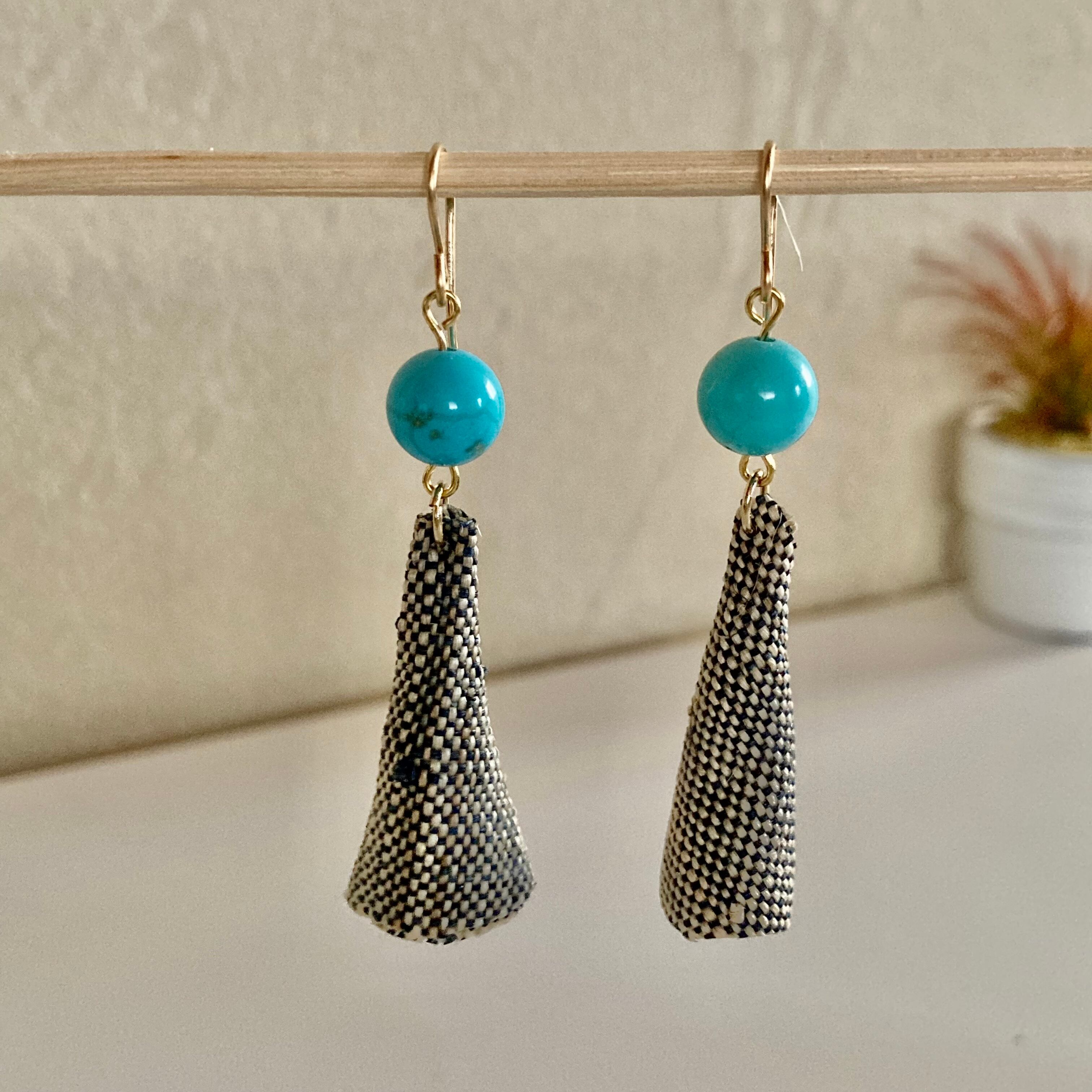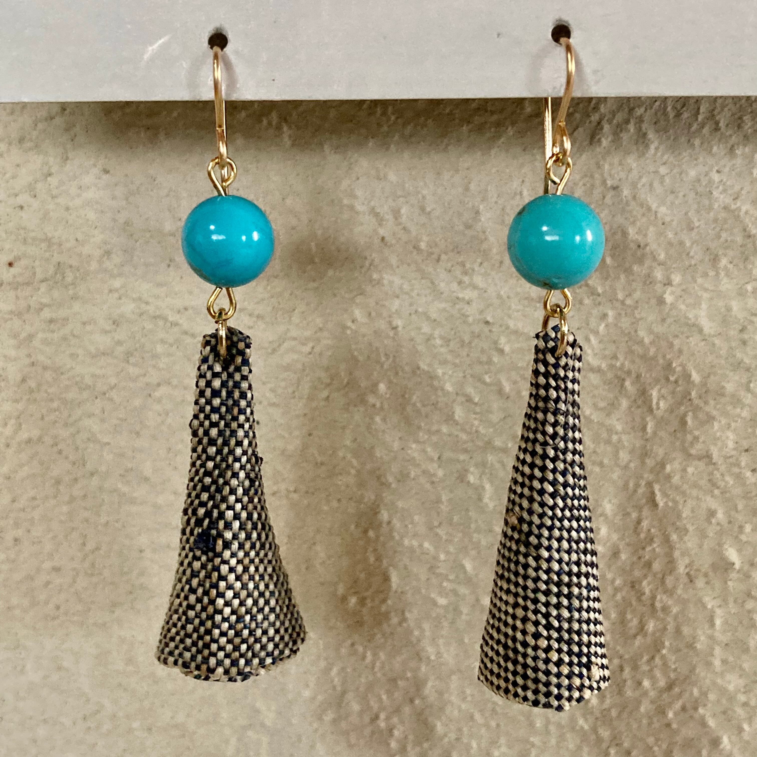 (コーン型芭蕉布 約3cm、マグネサイトターコイズ 約8mm)