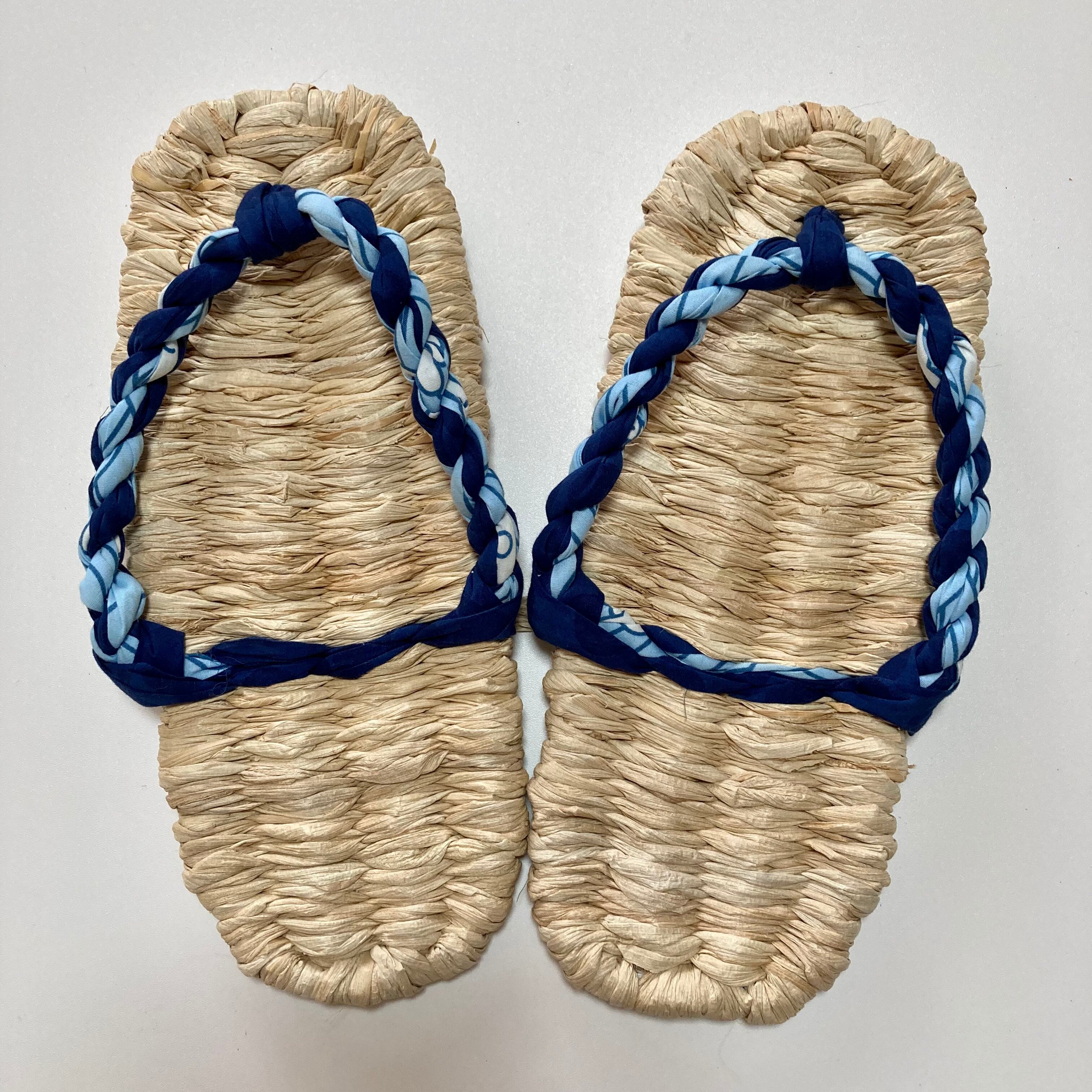 藁草履にくらべると柔らかく肌触りが良いのが特徴です。とても軽いので履いていても疲れないと評判です。これからの季節のフローリング用部屋履きとして最高です。