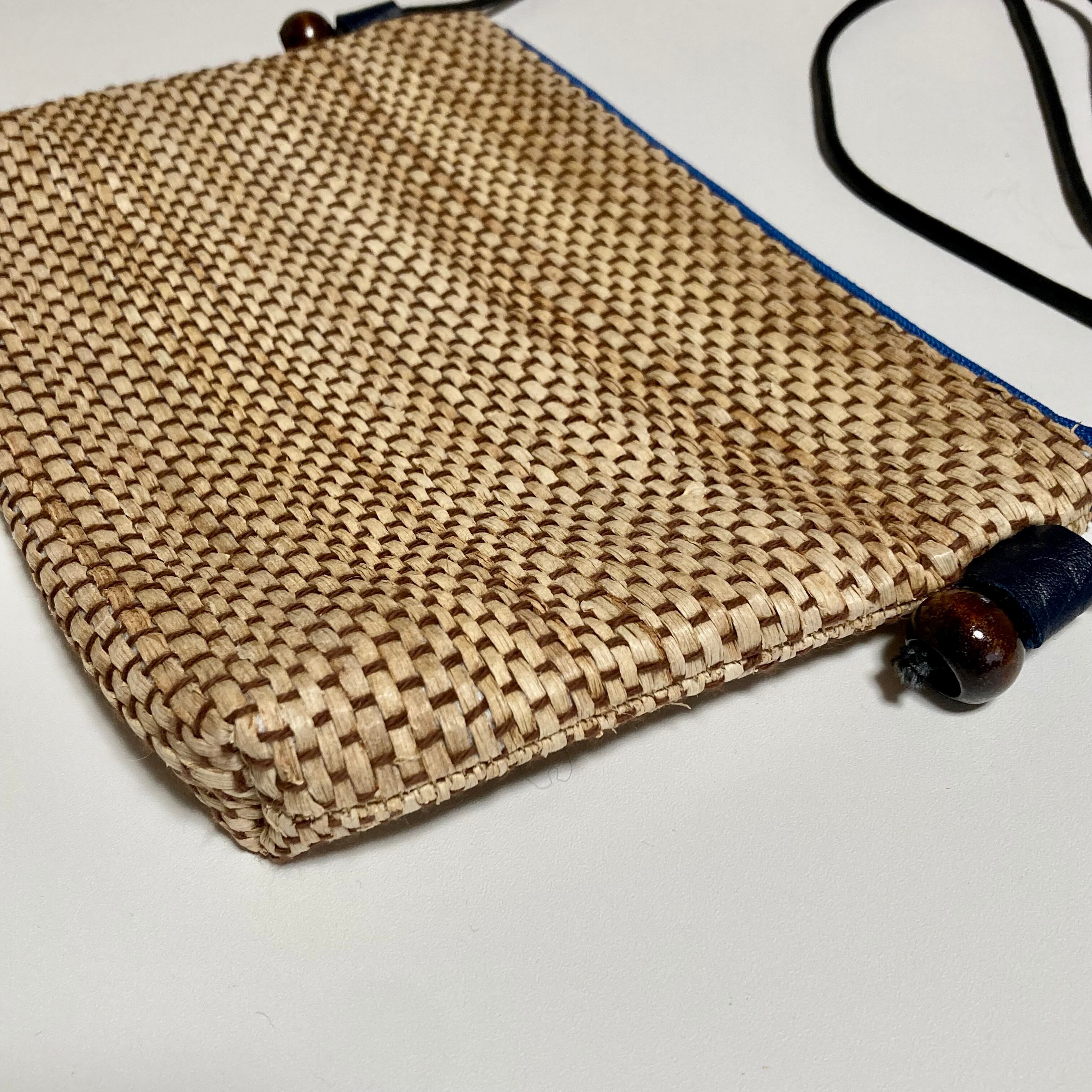 太めの綿糸を経糸に、細く裂いたウバサガラー(芭蕉糸作りの際に出る副産物)を緯糸に織った素材でできています。ウバサガラーのナチュラルな素材感を楽しんでいただける製品です。